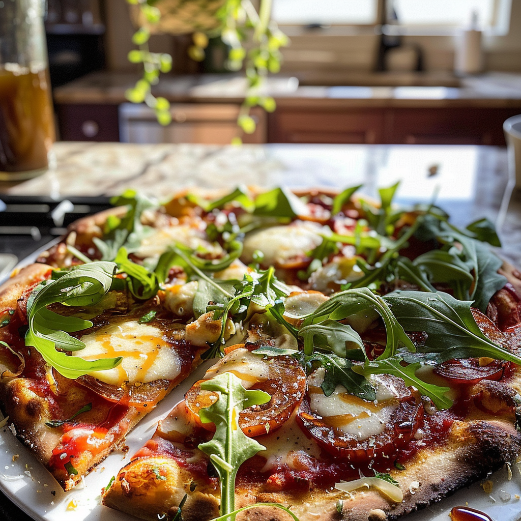 Drizzle with Hot Honey: Finally, finish off your masterpiece by drizzling hot honey over the arugula for that perfect blend of sweet and spicy goodness.