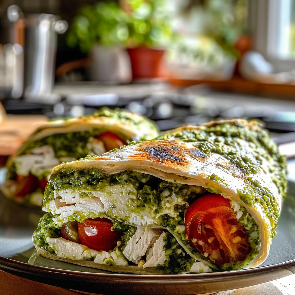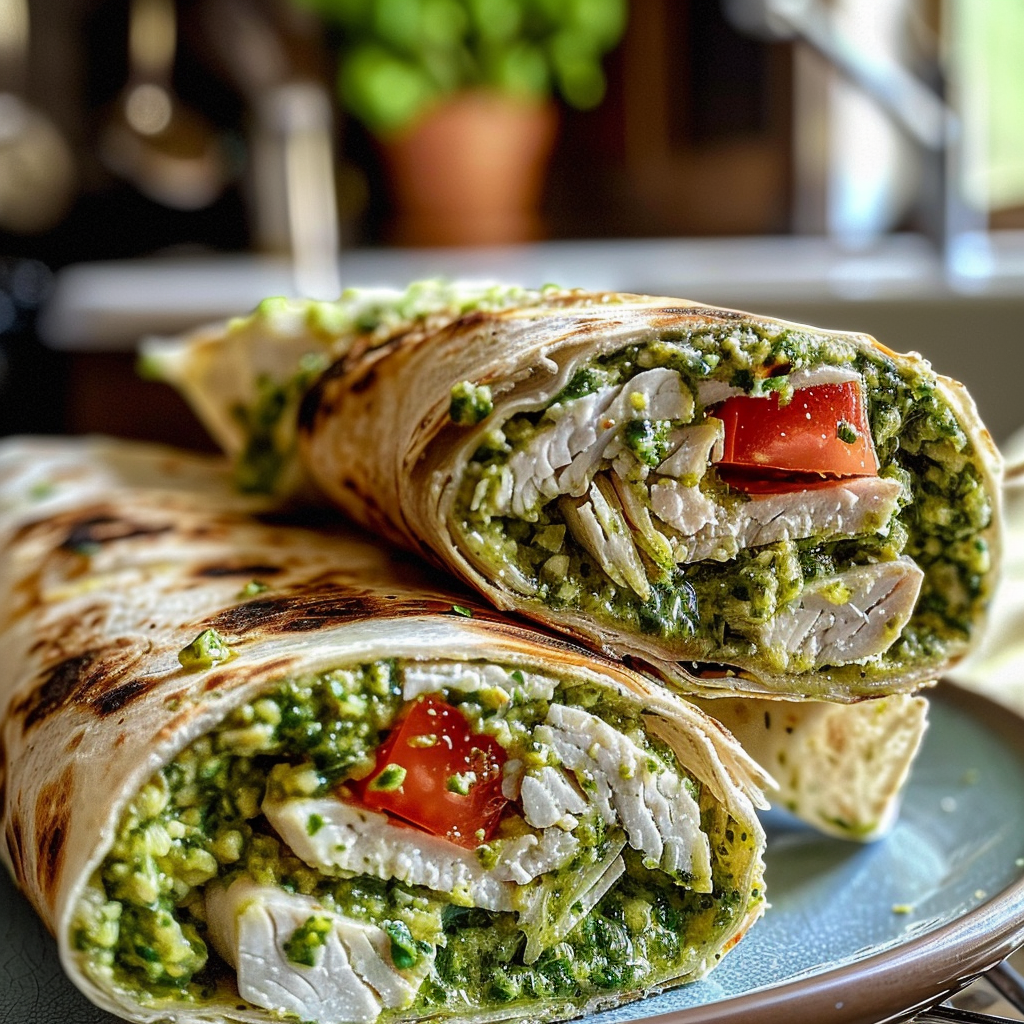 Delicious Healthy Cottage Cheese Pesto Wraps with Turkey