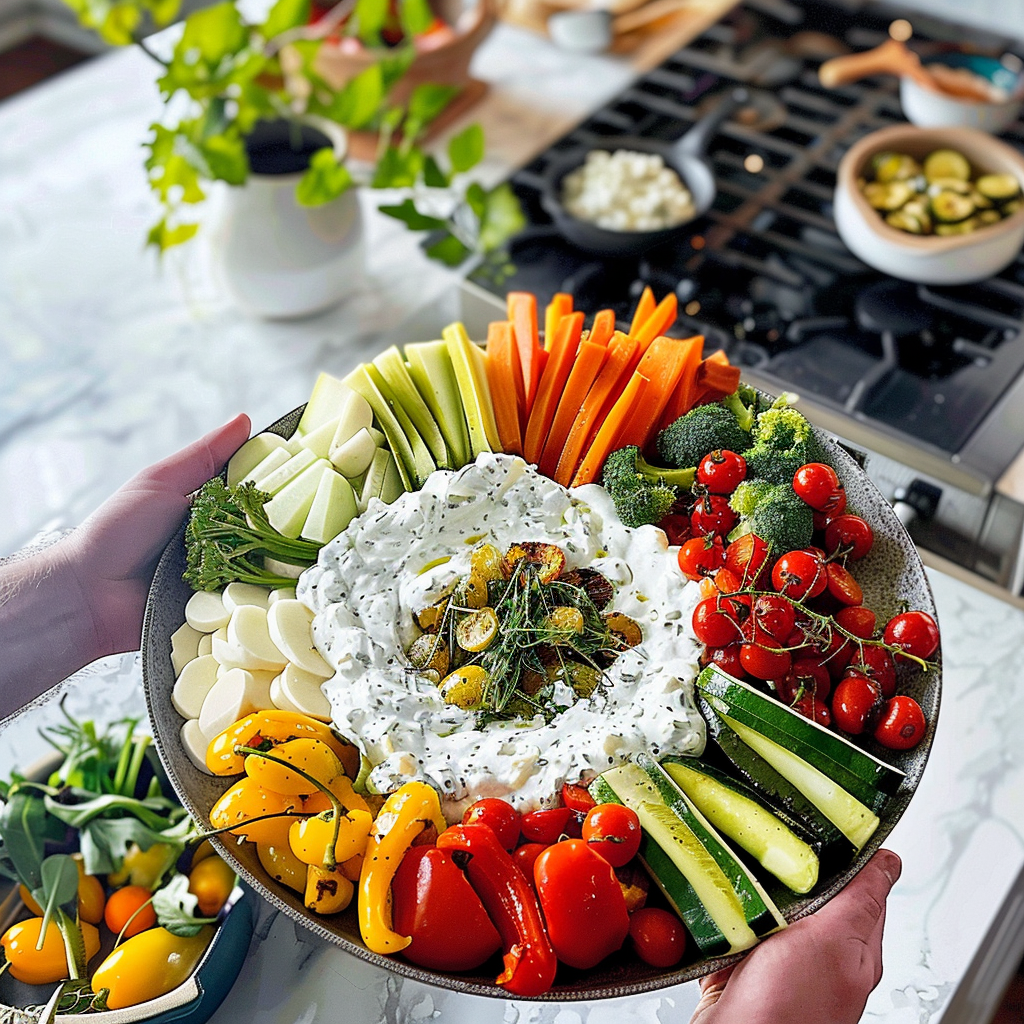 Vibrant Vegetable Platter with Greek Yogurt Ranch Delight
