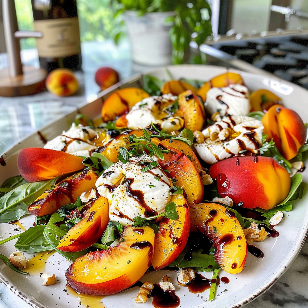 Delightful Peach Burrata Salad with Balsamic Drizzle