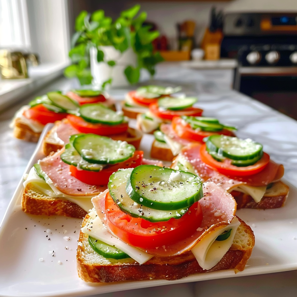 Tasty Mini Open-Faced Sandwiches with Bologna & Veggies
