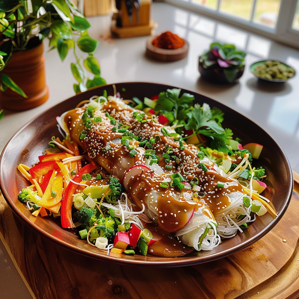 Colorful Spring Roll Salad with Peanut Dressing Recipe