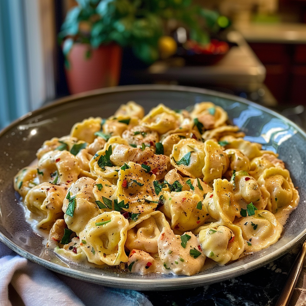 Feel free to swap in different proteins like shrimp or use vegetable tortellini for a lighter meal. You can also add spinach or sun-dried tomatoes for extra flavor and color that will impress anyone at the dinner table.