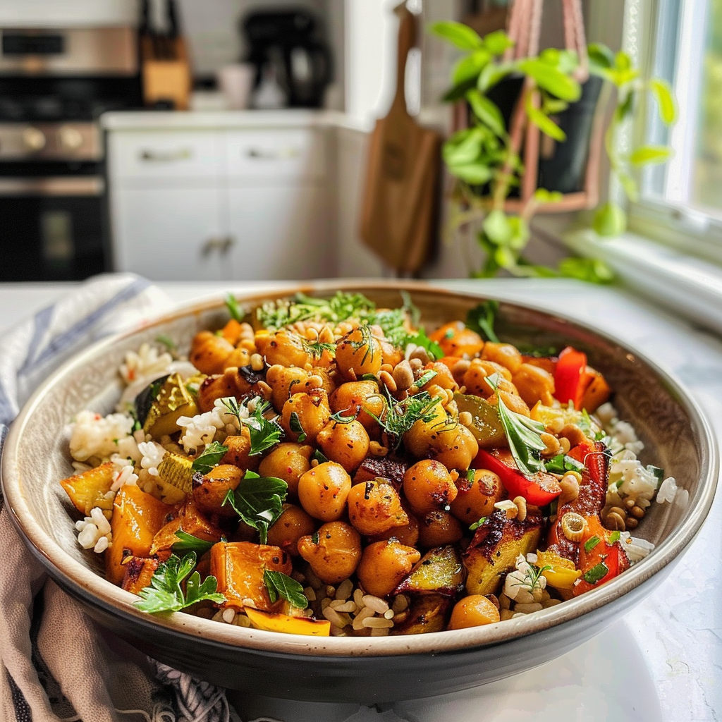 Indulge in the vibrant flavors of a Roasted Vegetable and Chickpea Bowl, where colorful veggies and crispy chickpeas come together for a nutritious meal. This dish is not only visually stunning but also packed with plant-based protein and essential nutrients. Perfect for weeknight dinners or entertaining guests, this bowl is a celebration of healthy eating that promises to delight every palate.