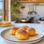Once baked, let them cool slightly before gently removing from molds. Drizzle syrup generously over each mini kunafa cream puff for an irresistible finish.