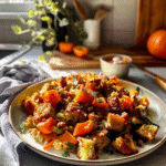 Chop and Mix Ingredients: Begin chopping vegetables into uniform pieces for even cooking. In a large bowl, toss sweet potatoes with olive oil, salt, and pepper until well-coated.