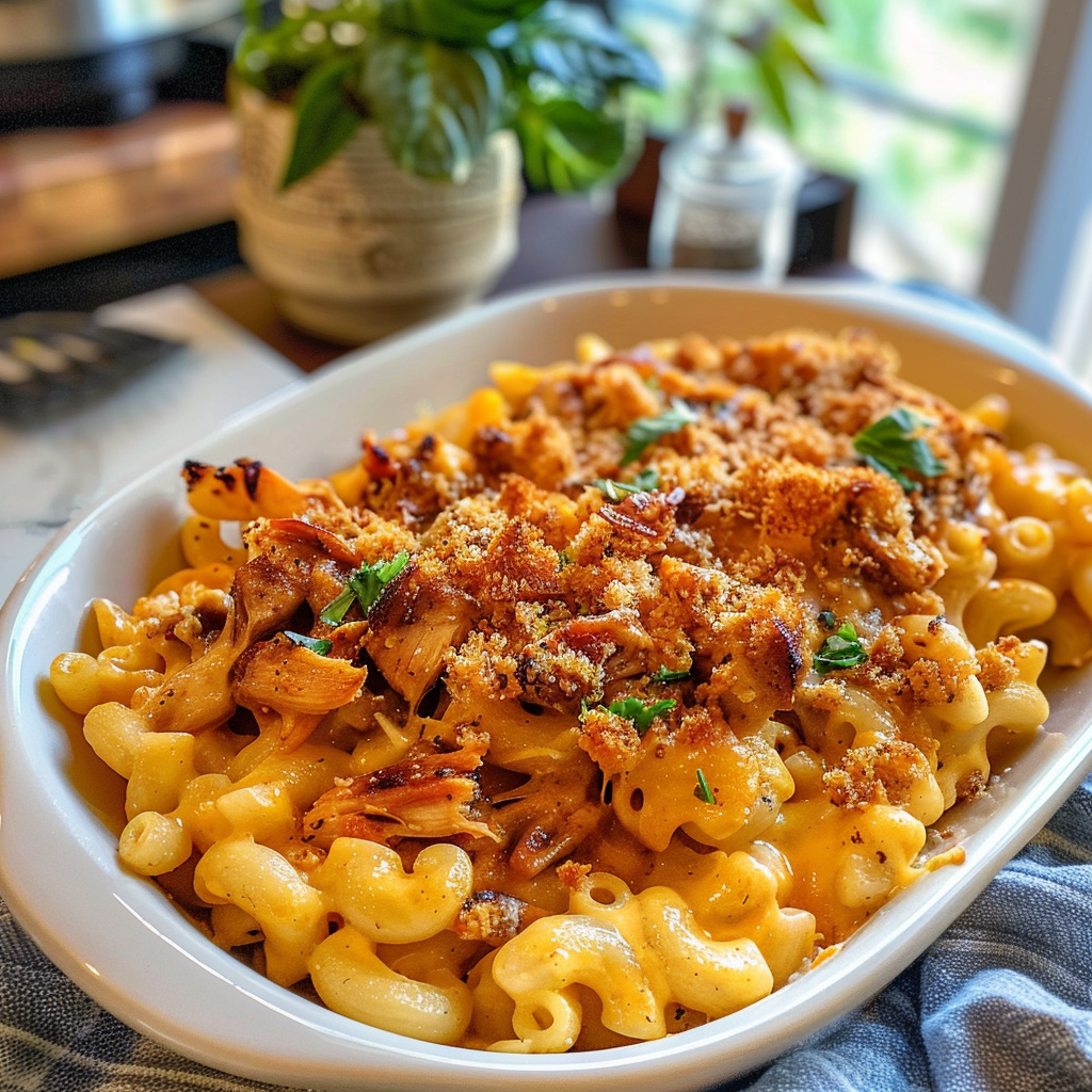Indulge in the creamy, cheesy delight of BBQ Chicken Mac and Cheese—a comforting dish that combines tender chicken with rich flavors of smoky barbecue and gooey cheddar. Perfect for weeknight dinners or entertaining guests, this recipe is sure to impress your family and friends. With its vibrant presentation and irresistible taste, it’s a crowd-pleaser that warms the soul.