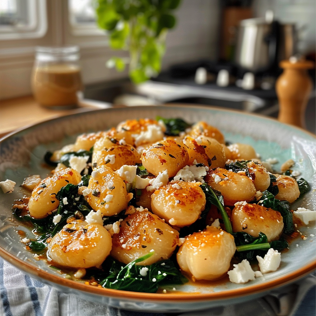 - This crispy gnocchi with spinach and feta recipe is a delightful blend of textures and flavors