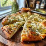 Dill pickle focaccia combines savory bread with tangy pickle flavor, creating a delicious contrast.