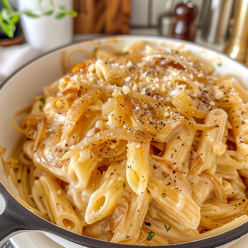 - French Onion Pasta combines the sweetness of caramelized onions with cheesy goodness